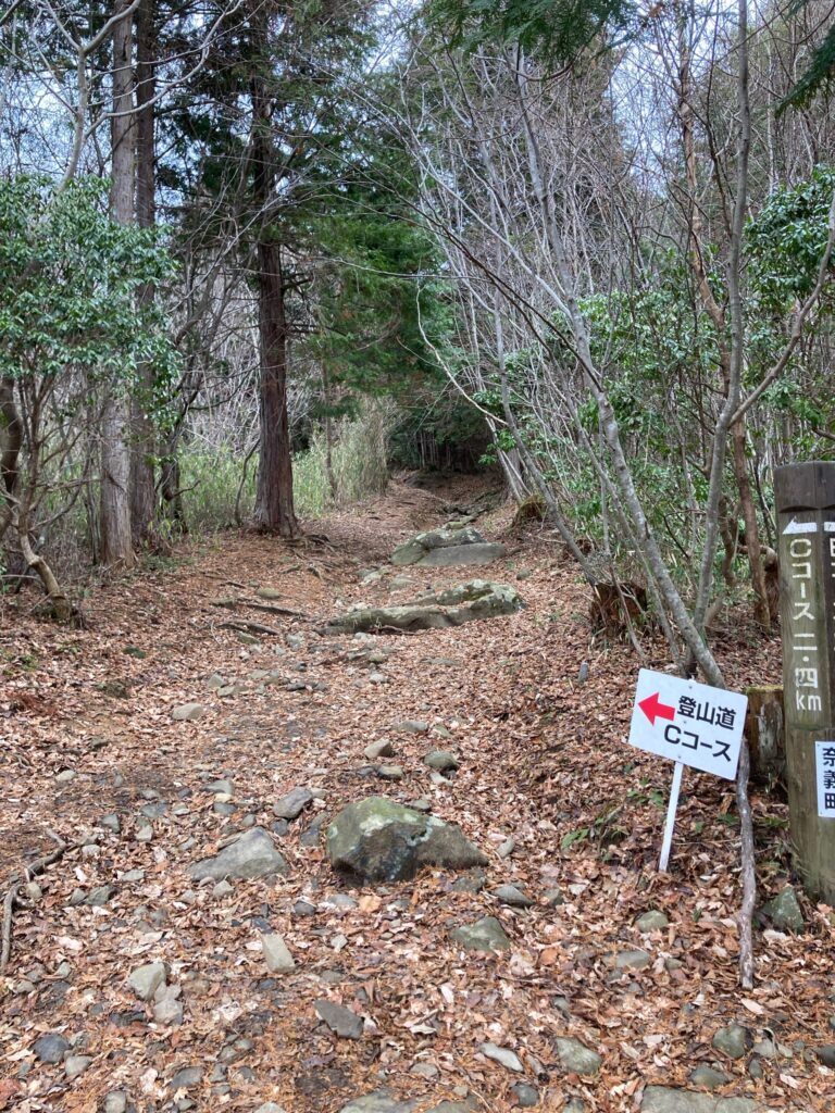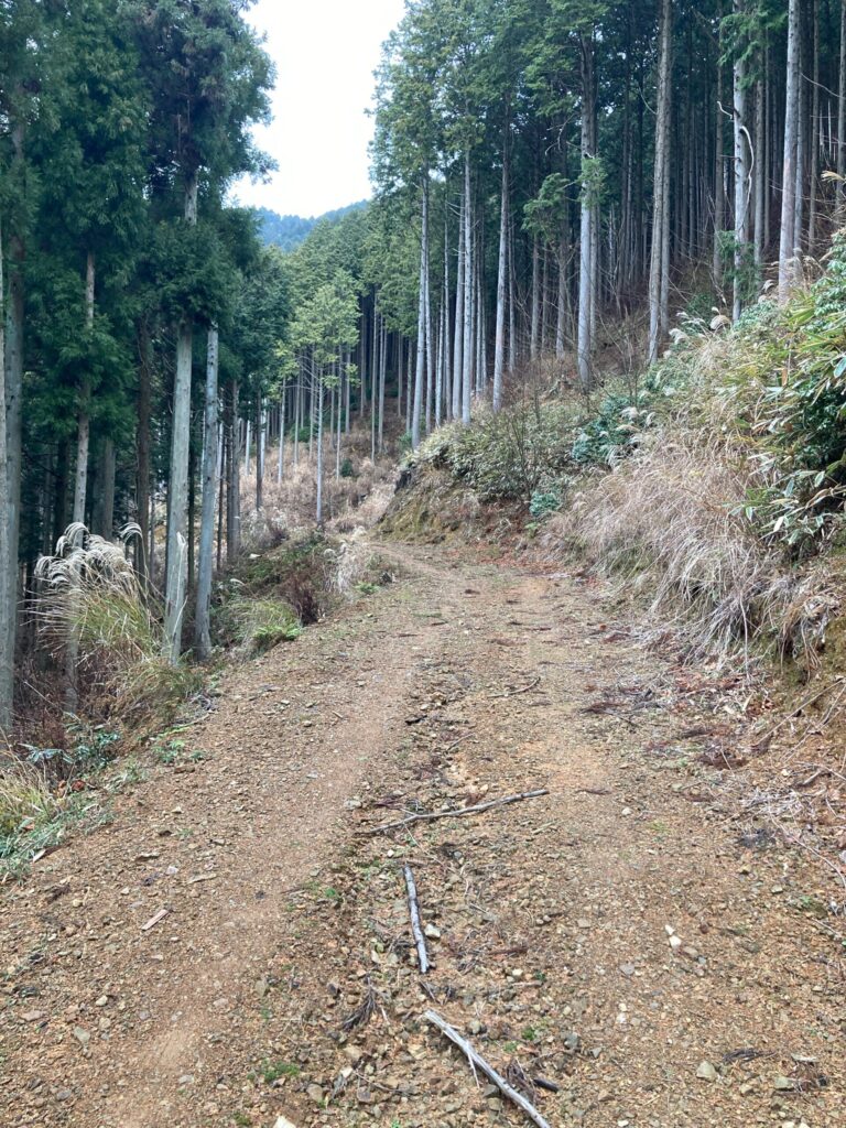 さて、八巻山に着いた後少し戻ってB、Cコース方面への林道を歩いていきます。