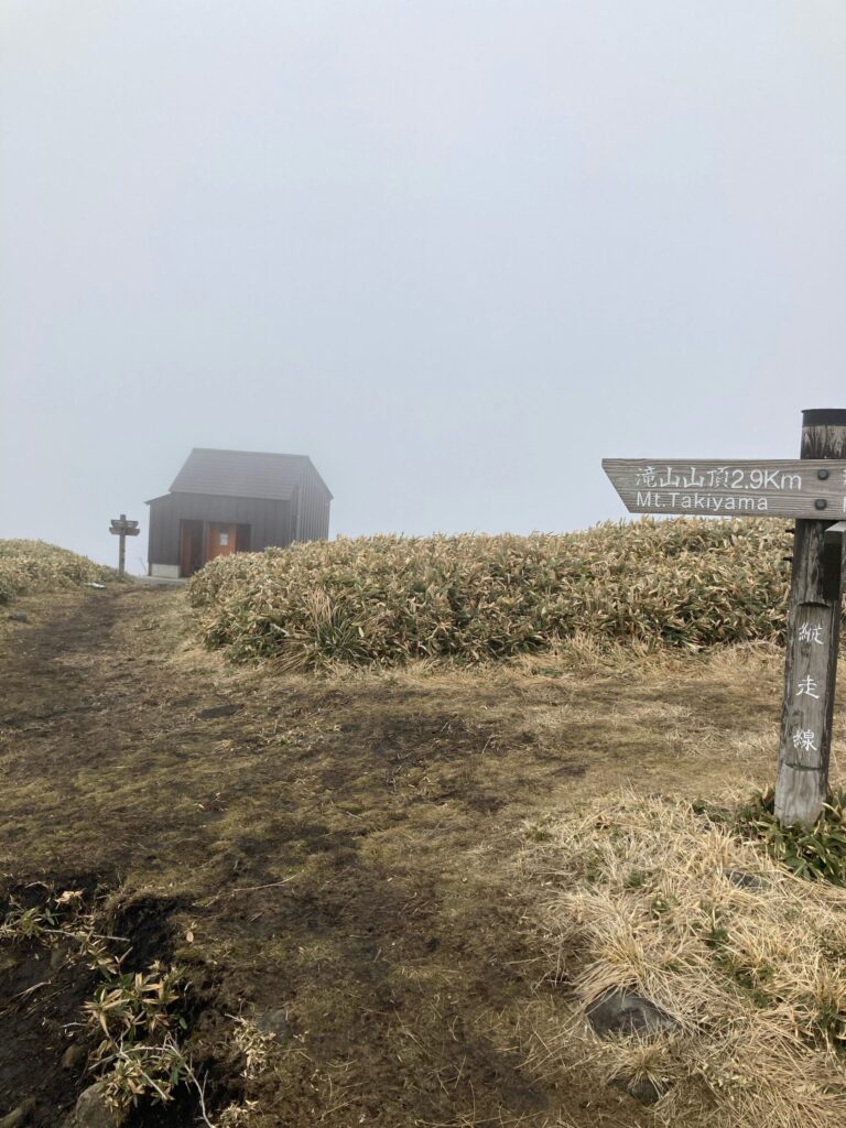 なお、靴を脱がなくても良い山頂下の避難小屋で昼食を食べることにして移動します。