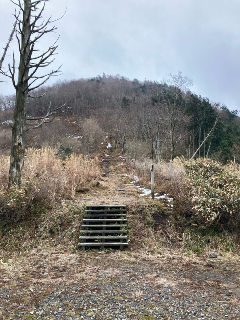 さて、林道と合流するところから慈母峰への階段が始まります。