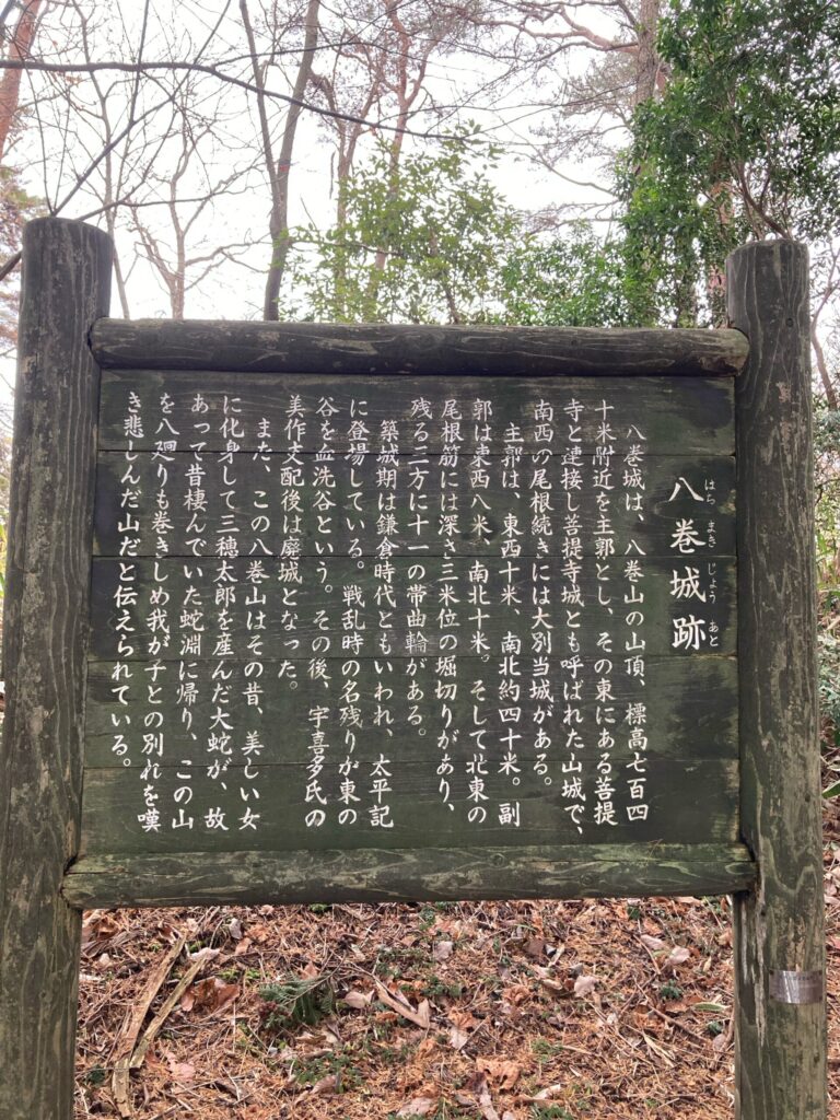 さらに進むと八巻城跡の表示があり、もうすぐ八巻山です。