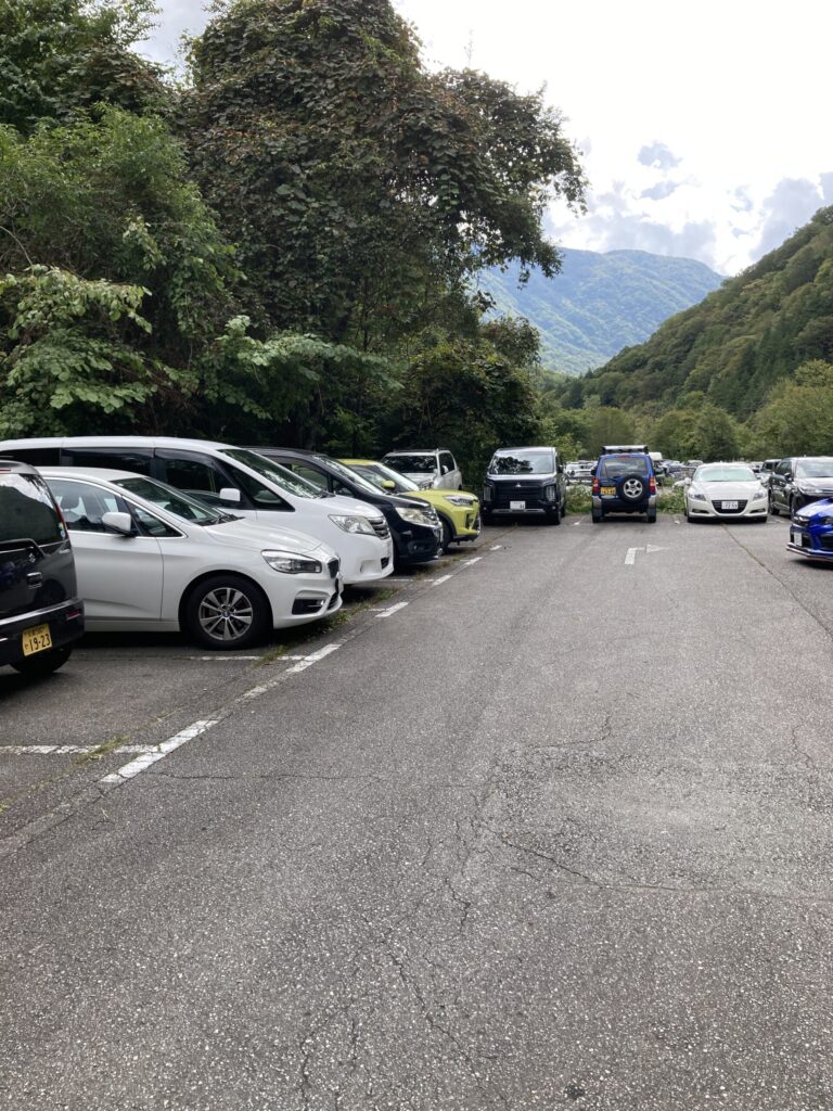 新穂高温泉の第5駐車場(無料)には昼過ぎに到着しました。