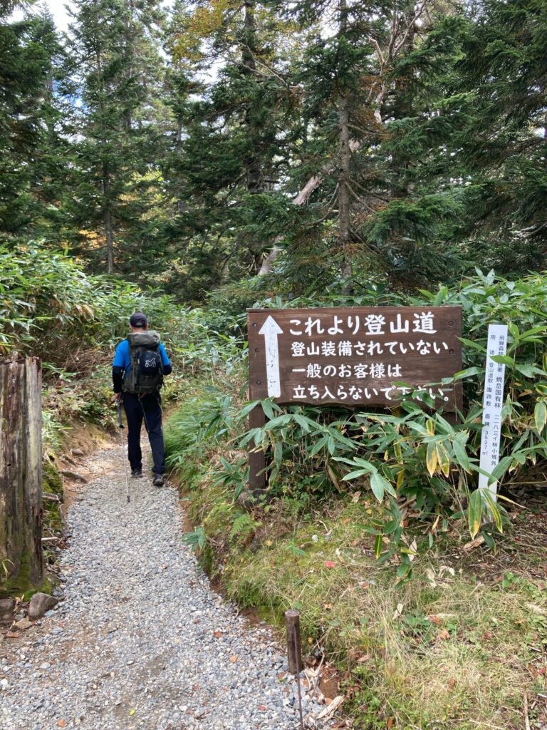 さて、いよいよ西穂山荘に向かって登山道に入ります。