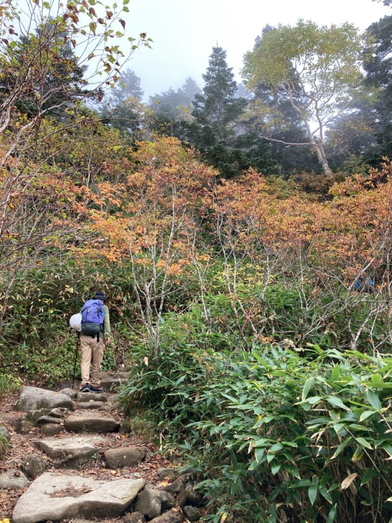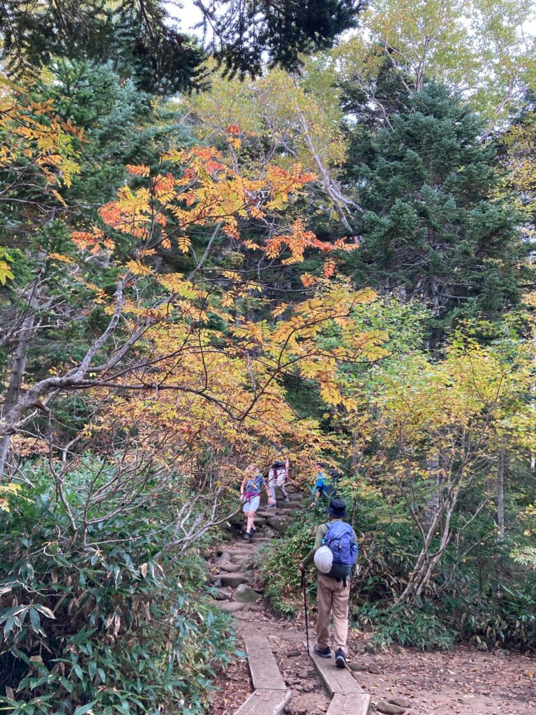 紅葉が始まってきている中、最初はなだらかな道を登って行きます。