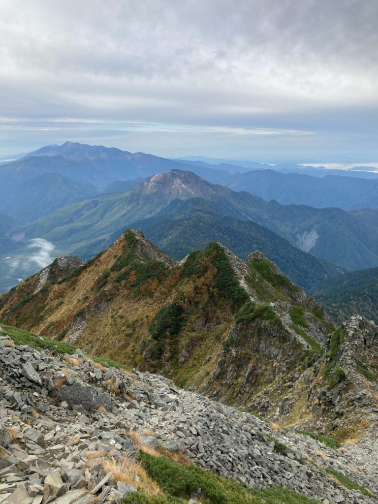 そして、歩いてきた稜線もよく見えています。