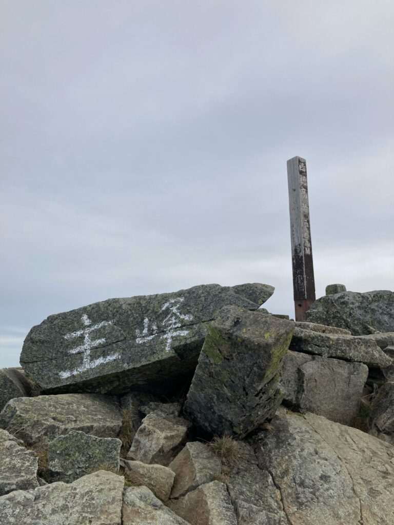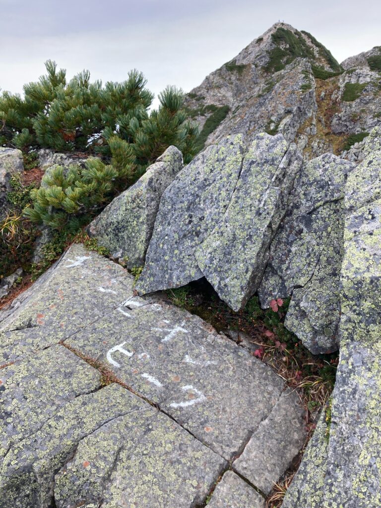 そして、チャンピオンピークに着きましたが、ここには標柱ではなく岩に名前が書いてありました。