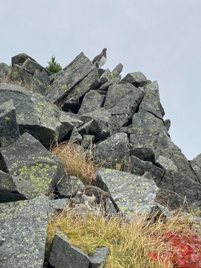 さて、山頂での眺望に満足して下山を始めると、雷鳥が姿を現してくれました。
