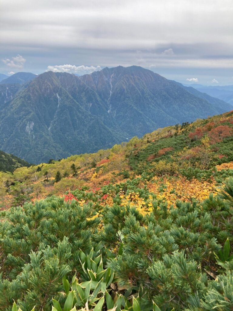 なお、写真の中央左のとんがった山は笠ヶ岳です。