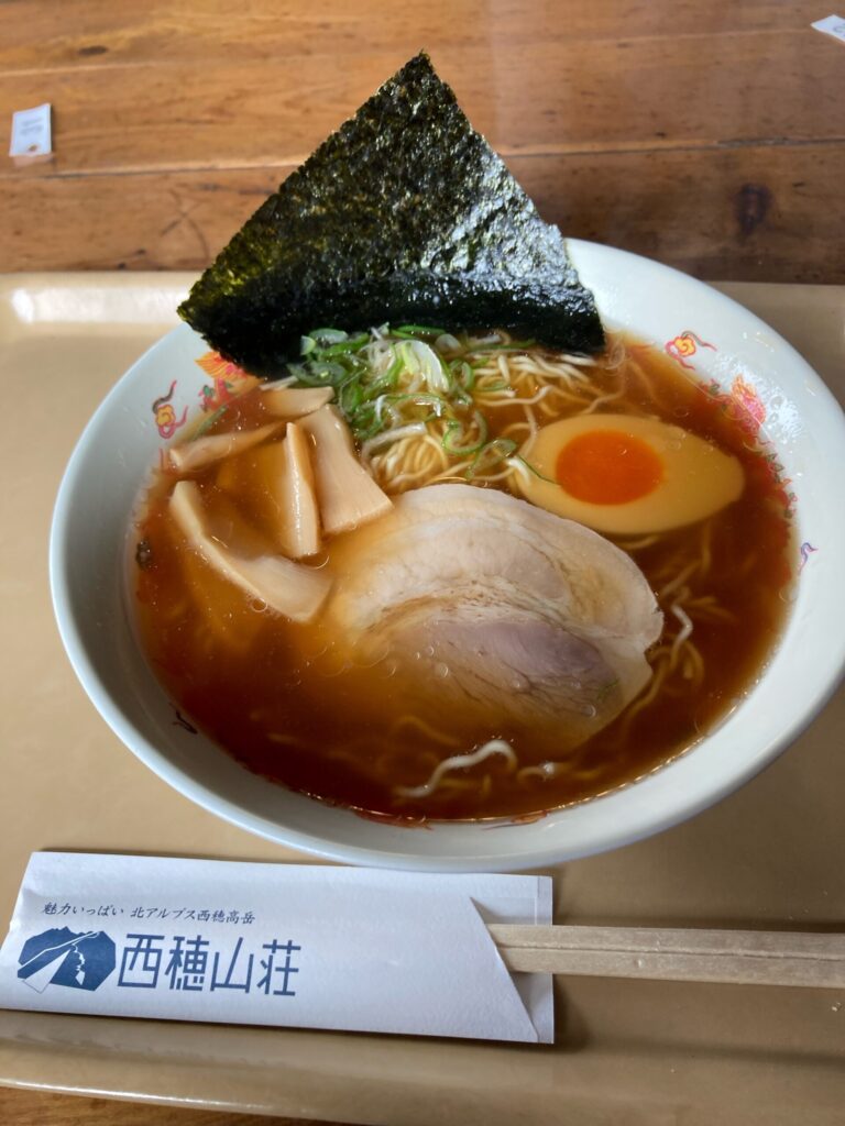 さて、ここで西穂山荘名物のラーメンをいただきます。